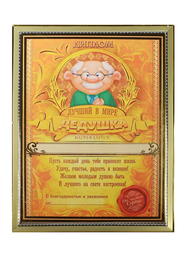 Диплом в рамке Лучший в мире дедушка (15х20) (1126588),