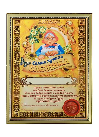Диплом в рамке Самая лучшая бабушка (15х20) (1126586)