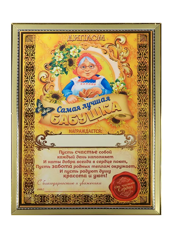 .В отличие от открытки диплом не будет пылиться в шкафу. Его удобно поставить на рабочий стол или на полку.