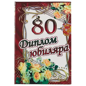 Диплом Юбиляра 80 лет. Диплом юбиляра - отличный подарок, как сам по себе, так и как дополнение к основному подарку. Диплом имеет оригинальную вклейку с поздравлением юбиляру. Подарок юбиляру.Размер 150х210 мм. (300х210 мм. в развороте)