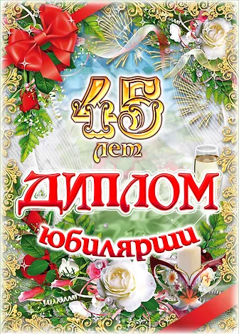Диплом юбилярши. Ламинация 5+0. Подарок на юбилей. Диплом имеет оригинальную вклейку с поздравлением юбилярше.Размер 150х210 мм. (300х210 мм. в развороте).