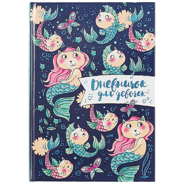 Дневничок для девочек А5 48л "Кошки-русалки" 7БЦ, глянц.пленка, тиснение цв.фольгой, полноцв.блок, офсет 80г/м2