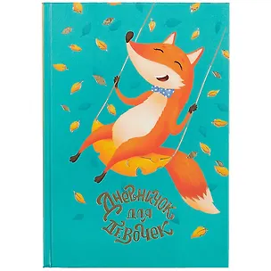 Дневничок для девочек А5 48л "Лиса на качелях" 7БЦ, глянц.пленка, тиснение цв.фольгой, полноцв.блок, офсет 80г/м2