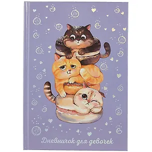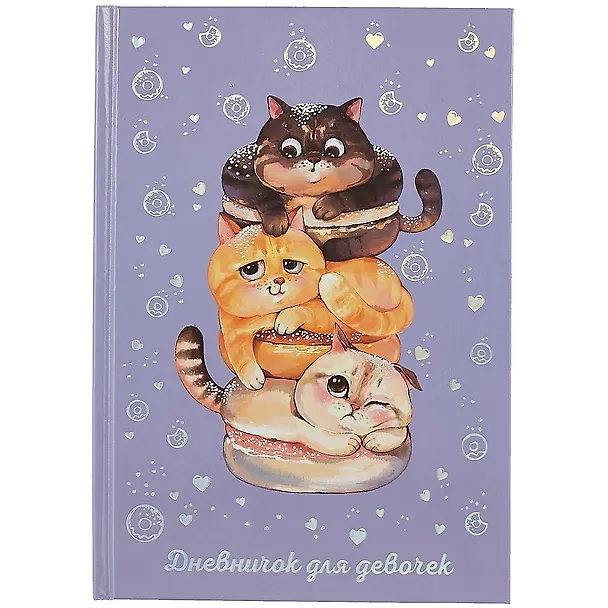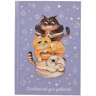 Дневничок для девочек А5 48л "Сытые котики" 7БЦ, глянц.пленка, тиснение цв.фольгой, полноцв.блок, офсет 80г/м2