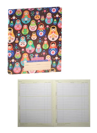 Дневник для младших классов "Яркие матрешки (орнамент)" 7Бц, матовая ламинация, выборочный лак, блестки, Unnika