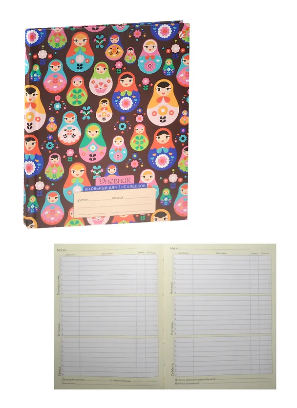 Дневник для мл.кл. "Яркие матрешки (орнамент)" 7Бц, мат.ламин., выб.лак, блестки, Unnika