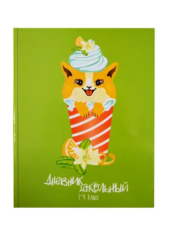 Дневник для мл.кл. "КОРГИ ДЕСЕРТ" 7БЦ, глянц.ламин., шпаргалка для мл.классов
