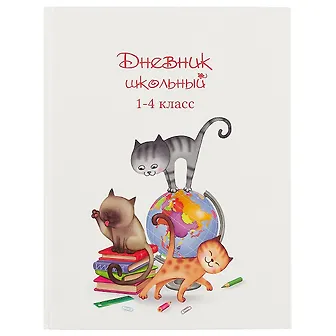 Дневник школьный 1-4 класс Котики и глобус, твердый переплет 7БЦ, глянцевая пленка, 48л, бумага офсет, запечатка форзацев картами России и мира