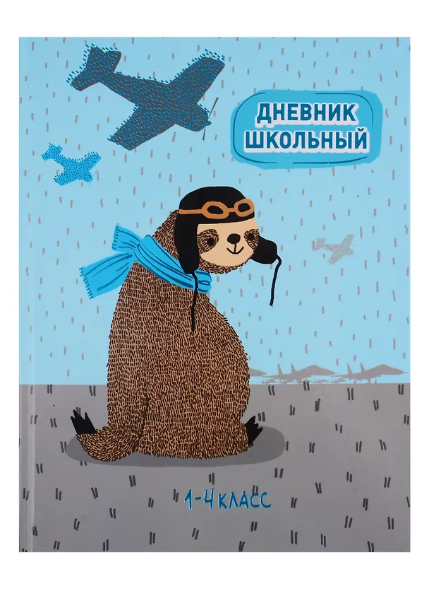Дневник для мл.кл. "ЛЁТЧИК ЛЕНИВЕЦ" 7БЦ, тиснение фольгой, шпаргалка для мл.классов