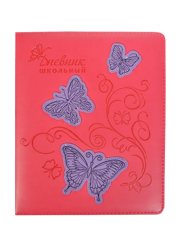 Дневник шк. "БАБОЧКИ, СИРЕНЕВЫЕ НА РОЗОВОМ" 7БЦ, поролон, искусств.кожа, тиснение блинт, аппликация, универс.шпаргалка, Феникс