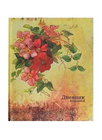 Дневник шк. "ЦВЕТЫ НА БЕЖЕВОМ" 7БЦ, печать по ткани, тиснение золот.фольгой, универс.шпаргалка