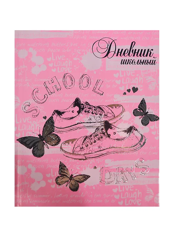 Дневник шк. "КЕДЫ НА РОЗОВОМ" 7БЦ, печать по метализир. бумаге, тиснение цв.фольгой, универс.шпаргалка