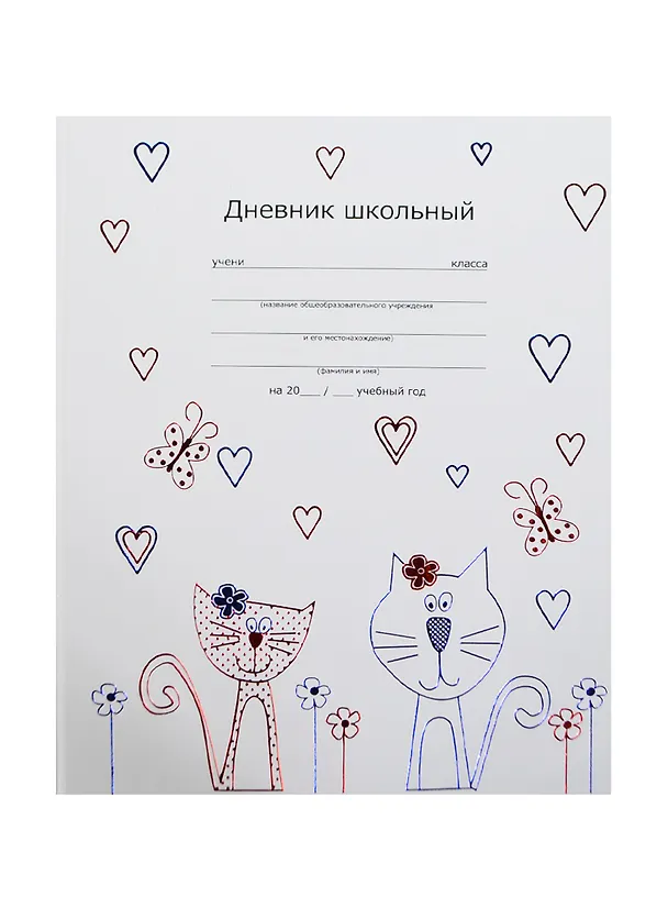 Дневник шк. "КОТЫ И СЕРДЕЧКИ" 7БЦ, тиснение цв.фольгой, универс.шпаргалка, Феникс