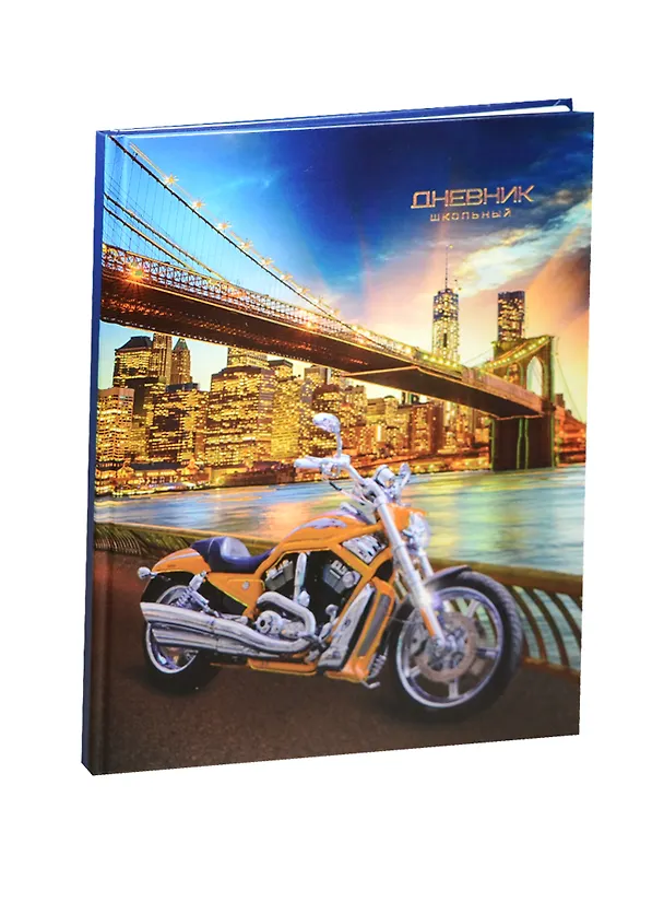 Дневник шк. "МОТОЦИКЛ И МОСТ" 7БЦ, тисн.голограф.фольгой, универс.шпаргалка, Феникс