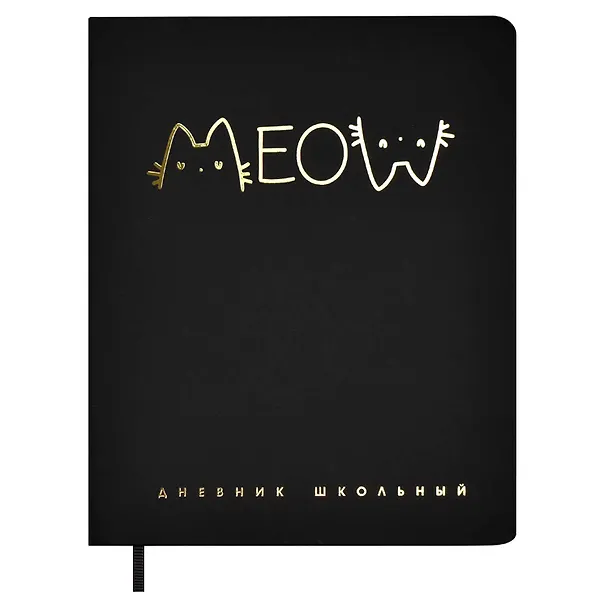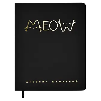 Дневник школьный арт. 66434 / 15 НАДПИСЬ КОТ (кожзам: А5+; твёрдый переплёт, материал обложки: искусственная кожа "Лейкер софт-тач"; декор: тиснение 3D-фольгой; способ крепления блока: ниткошвейный; вн. блок: 48 л., белый офсет 80 г/м², печать в одну краску, справочный материал: универсальная шпаргалка; отделка среза: окрашивание пантоном; закладка: одно ляссе; форзац: печать пантоном; индивидуальная упаковка: ПЭТ-пакет)