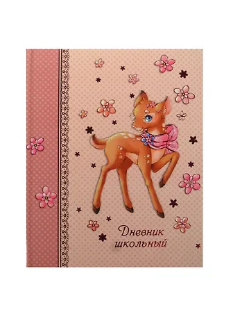 Дневник шк. "ОЛЕНЕНОК" 7БЦ, объем. аппликация под мат. пл., тисн.розов.фольгой, универс.шпаргалка, Феникс