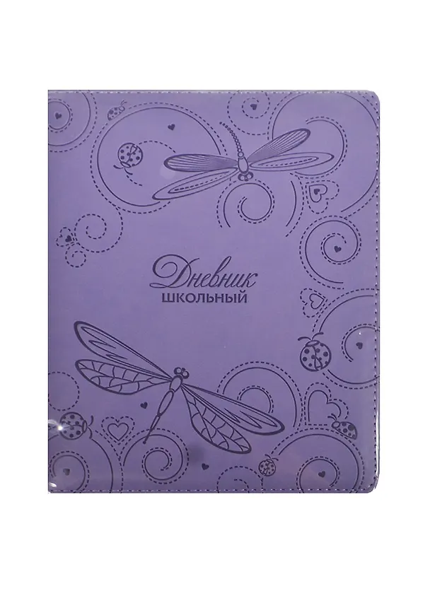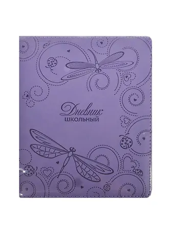 Дневник шк. "Сиреневый (Стрекозы)" 7БЦ, искусств.кожа, тиснение блинт, универс.шпаргалка, Феникс