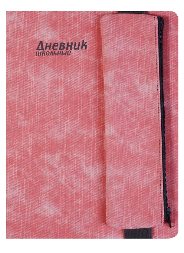 Дневник школьный "ДЖИНС РОЗОВЫЙ" пенал на резинке, твердая обложка, искусственная кожа, тиснение цветной фольгой, ляссе, одноцветная печать внутреннего блока и форзаца, белый офсет 70г/м2, индивидуальная упаковка