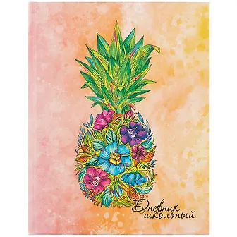 Дневник школьный арт. 49310 АНАНАСОВЫЙ РАСЦВЕТ / твёрдый переплёт, А5+, 48 л., выборочный УФ-лак, матовая ламинация, печать в одну краску, универсальная шпаргалка/