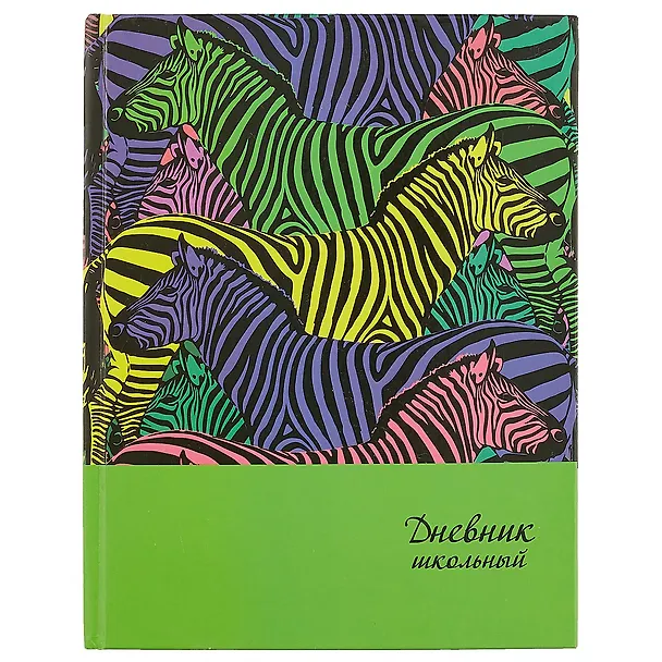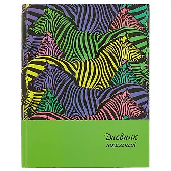 Дневник шк. "ЦВЕТНЫЕ ЗЕБРЫ" 7БЦ, выб.УФ-лак, мат.пленка, запечатка форзацев картами России и мира, универс.шпаргалка