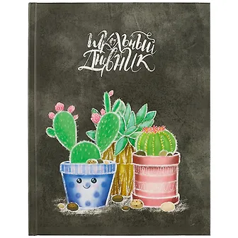 Дневник школьный арт. 49311 ЦВЕТУЩИЕ КАКТУСЫ / твёрдый переплёт, А5+, 48 л., выборочный УФ-лак, матовая ламинация, печать в одну краску, универсальная шпаргалка/