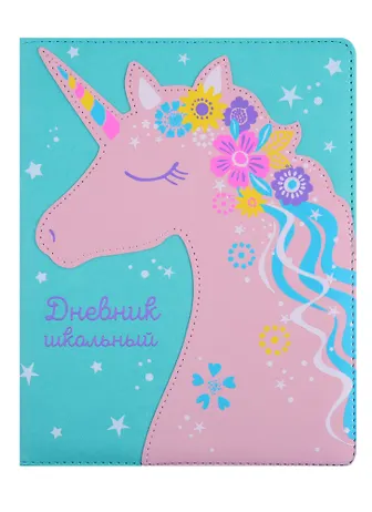 Дневник шк. "ЕДИНОРОГ" иск.кожа, 7БЦ, поролон, аппликация иск. кожа, ляссе, универс.шпаргалка