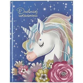Дневник школьный арт. 49603 ЕДИНОРОГ В ЦВЕТАХ / твёрдый переплёт, А5+, 48 л., матовая ламинация, печать в одну краску, универсальная шпаргалка/