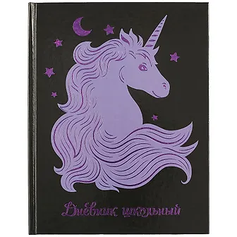 Дневник школьный арт. 49380 ФИОЛЕТОВЫЙ ЕДИНОРОГ / твёрдый переплёт, А5+, 48 л., тиснение голографической фольгой, глянцевая ламинация, печать в одну краску, универсальная шпаргалка/