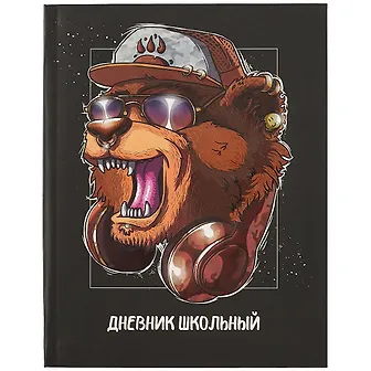 Дневник школьный арт. 49444 ХИП-ХОП ГРИЗЛИ / интегральный переплёт, А5+, 48 л., многоуровневый конгрев, печать по фольге, матовая ламинация, печать в одну краску, универсальная шпаргалка/