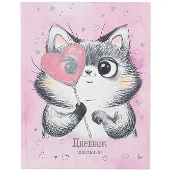 Отличный дневник для девочки школьницы. Отлично подойдёт для девочки - школьницы учащейся с 1 по 5 класс. Плотная обложка нежно - розового цвета с изображением милого и доброго котика. Надпись выполнена тиснением серебряной фольгой. Внутри белоснежные листы хорошего качества, разлиновка черного цвета. На форзацах дневника красочная политическая карта и физическая карта мира. В конце дневника справочный материал по всем основным предметам: алгебра, геометрия, русский язык, математика. В начале дневника есть страницы, где указываются личные данные ученика, список преподавателей, факультативные занятия, расписания уроков.