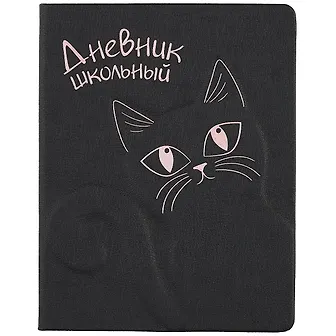 Дневник шк. "КОШКА" иск.кожа, 7БЦ, 3D-дизайн, тиснение фольгой