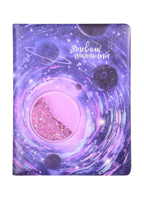 Дневник шк. "КОСМОС" иск.кожа, 7БЦ, поролон, окно с маслом, пайетками и глиттером внутри
