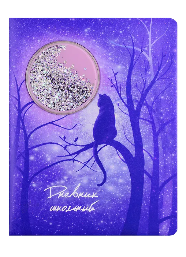 Дневник шк. "КОТ НА ДЕРЕВЕ" иск.кожа, 7БЦ, поролон, пайетки, глиттер, срез пантоном, ляссе, универс.шпаргалка