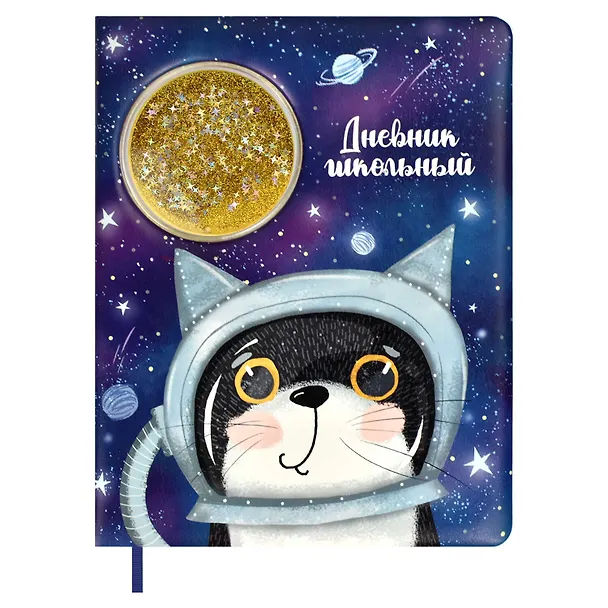 Обложка дневника из мягкого кожзама, а луна представляет собой пластиковое окошко, внутри которого блестки. Они при двигаются, переливаются, это красиво.
