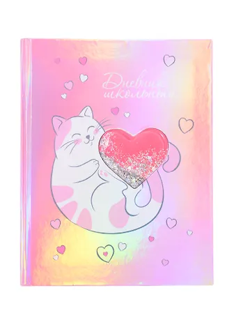 Дневник шк. "КОТИК", 7БЦ, голограф.бумага, аппликация(пайетки,глиттер)