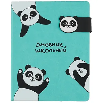 Дневник шк. "ПАНДЫ" тв.переплёт, иск.кожа "Виннер", шелкография в две краски, ляссе, магнитн.клапан, инд.уп.