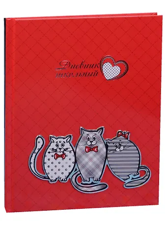 Дневник шк. арт.43472 ТРИО КОТОВ (7БЦ, с объемной аппликацией под глянц. пл., тисн. серебр. фольгой, 96 стр., бум. офсет, универс. шпаргалка, индивид. ПЭТ-упак.)