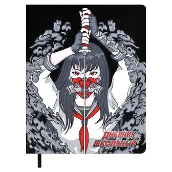 Дневник школьный арт. 66421 / 15 ТАНЕЦ С КАТАНОЙ (кожзам: А5+; твёрдый переплёт, материал обложки: искусственная кожа "Лейкер софт-тач"; декор: высокая полноцветная печать, полноцветная печать; способ крепления блока: ниткошвейный; вн. блок: 48 л., белый офсет 80 г/м², печать в одну краску, справочный материал: универсальная шпаргалка; закладка: одно ляссе; форзац: печать в одну краску; индивидуальная упаковка: ПЭТ-пакет)