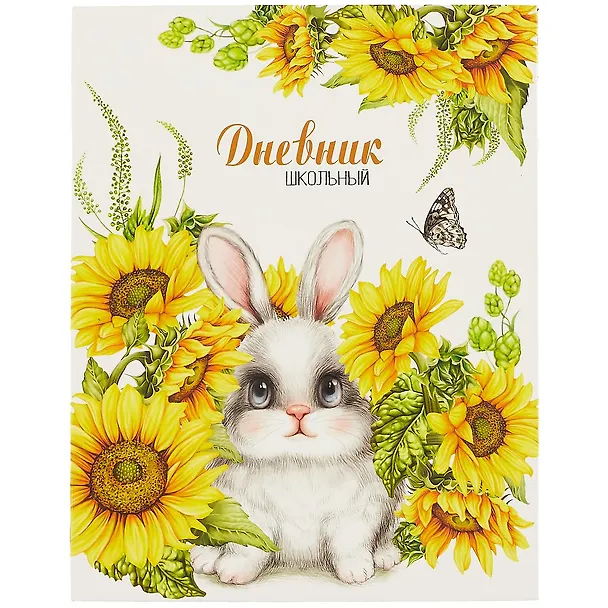 Дневник школьный арт. 49411 ЗАЙКА В ПОДСОЛНУХАХ / интегральный переплёт, А5+, 48 л., конгрев, выборочный УФ-лак, печать в одну краску, универсальная шпаргалка/