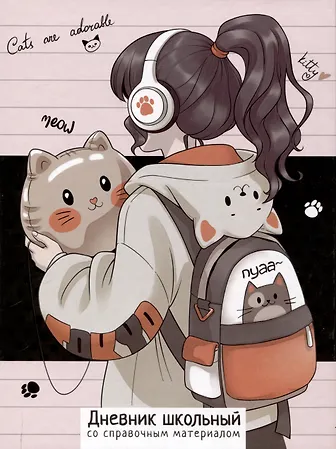 Дневник шк. "Любительница котиков" тв.переплет, выб. УФ-лак, мат.ламинация, пантон, универс.шпаргалка