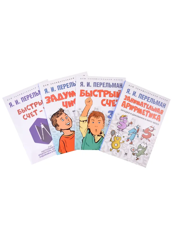 Вашему вниманию предлагается комплект из 4-х книг «Дом занимательной науки. Комплект 7 (Быстрый счет: 30 простых приемов устного счета. Занимательная арифметика: загадки и диковинки в мире чисел. Задумай число: математический отгадчик. Быстрый счет – 2, или Настольная книга архитектора, скульптора, художника и картографа), автор-составитель Перельман Я.И.