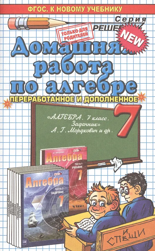 К задачнику А.Г. Мордковича и др. "Алгебра. 7 класс. В 2 ч. Ч. 2. Задачник для учащихся общеобразовательных организаций". Издание девятнадцатое, стереотипное. ФГОС (к новому учебнику). В пособии решены и в большинстве случаев подробно разобраны задачи и упражнения из задачника "Алгебра. 7 класс. В 2 ч. Ч. 2. Задачник для учащихся общеобразовательных организаций / [А.Г. Мордкович и др.]; под ред. А.Г. Мордковича. - 19-е изд., стер. - М.: Мнемозина, 2014".