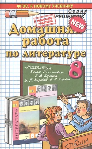 В пособии подробно разобраны вопросы и задания из учебника "Литература. 8 класс. Учебник для общеобразовательных учреждений. В 2 ч. / Авт.-сост. В.Я. Коровина и др. - 12-е изд. - М.: Просвещение, 2013". Пособие будет также полезно родителям, которые в случае необходимости смогут помочь детям в выполнении домашней работы по литературе. 9-е издание, переработанное и исправленное.