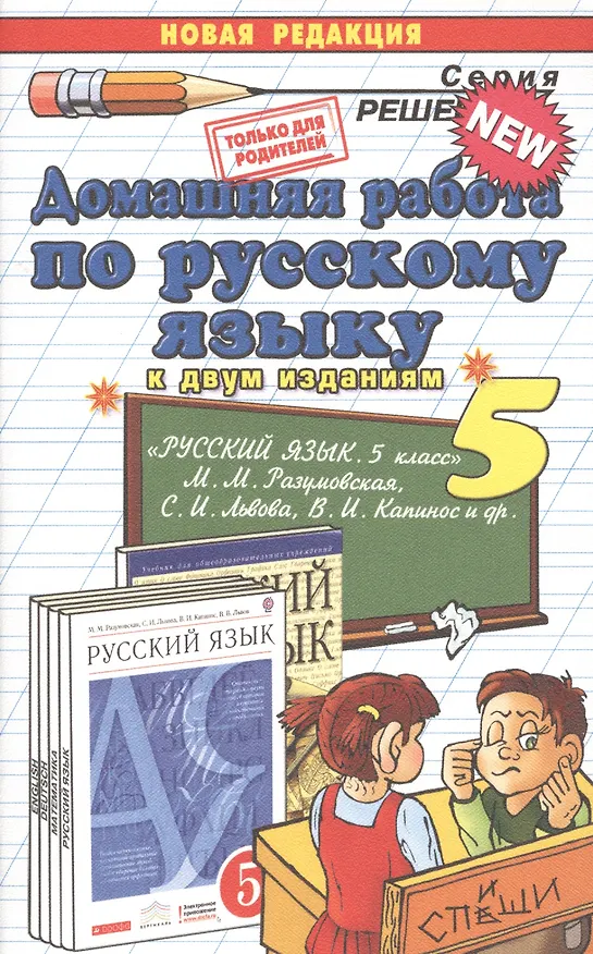 В пособии выполнены и в большинстве случаев подробно разобраны задания и упражнения из учебников "Русский язык. 5 класс: учебник для общеобразовательных учреждений / М.М. Разумовская, С.И. Львова, В.И. Капинос и др.; под ред. М.М. Разумовской, П.А. Леканта. - 3-е изд., стереотипное - М.: Дрофа, 2012" и "Русский язык. 5 класс: учебник для общеобразовательных учреждений / М.М. Разумовская, С.И. Львова, В.И, Капинос и др.; под ред. М.М, Разумовской, П.А. Леканта. - 18-е издание, стереотипное. - М.: Дрофа, 2011" Пособие адресовано родителям, которые смогут проконтролировать детей, а в случае необходимости помочь им в выполнении домашней работы по русскому языку.
