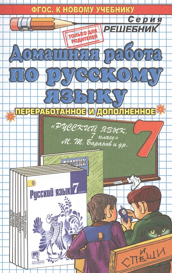 В пособии выполнены и в большинстве случаев подробно разобраны задания и упражнения из учебников "Русский язык. 7 класс: учеб. для общеобразоват. организаций / [М. Т. Баранов, Т. А. Ладыженская, Л. А. Тростенцова и др.; науч. ред. И. М. Шанский]. - 3-е изд. - М.: Просвещение, 2016", "Русский язык. 7 класс: учеб. для общеобразоват. учреждений / [М. Т. Баранов, Т. А. Ладыженская, Л. А. Тростенцова и др.; науч. ред. И. М Шанский]. - 33-е изд. - М.: Просвещение, 2011". Пособие адресовано родителям, которые смогут проконтролировать детей, а в случае необходимости помочь им в выполнении домашней работы по русскому языку. 2-е издание, стереотипное.