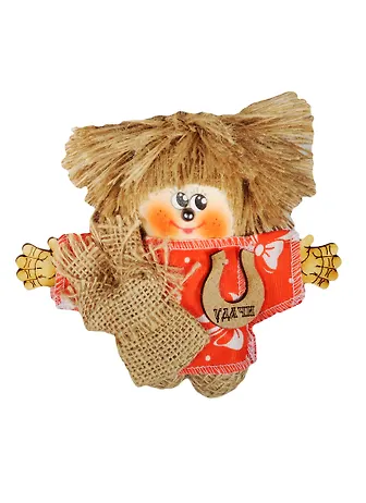 Домовой Кузьма с мешком и подковой малый (лен) (12см) (КУМН-3)