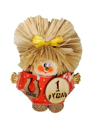 Домовой Кузьма с рублем и подковой малый (лыко) (12см) (КУМЛ-7)