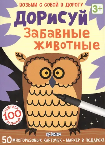 Дорисуй. Забавные животные. (50 многоразовых карточек + маркер в подарок!)