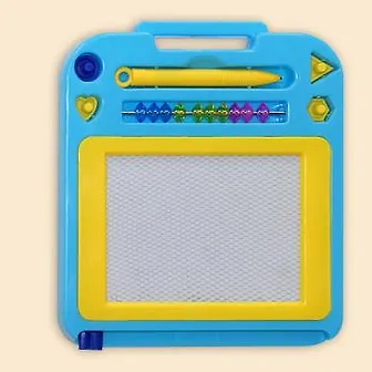 Очень хорошая доска для рисования, ребенок на ней может рисовать сколько угодно, а стирается картинка в мгновенье. Доска сделана из облегченного материала, в комплекте удобная ручка, которая прочно прикрепляется к самой доске. Так же есть четыре штампика с разными фигурами в виде круга, сердечка, треугольника и шестиугольника. Вот ими ребенок любит на доске ставить штампы. Классная доска, рекомендую!