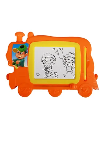 Цветная, яркая доска для рисования позволяет маленькому художнику создавать картинки, используя магнитную ручку. Благодаря специальному рычажку для очистки экрана, ребёнок может рисовать сколько угодно, не тратя бумагу. В комплект входят магнитные фигурки-печати. Эта игрушка очень компактна, поэтому её удобно брать с собой в дорогу или в гости.